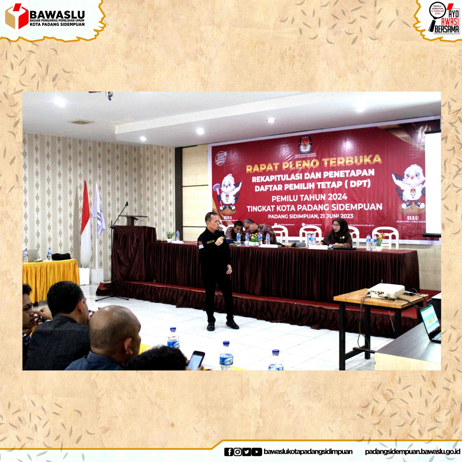 Bawaslu Kota Padangsidimpuan hadiri Rapat Pleno penyusunan dan penetapan DPT tingkat kota Padangsidimpuan